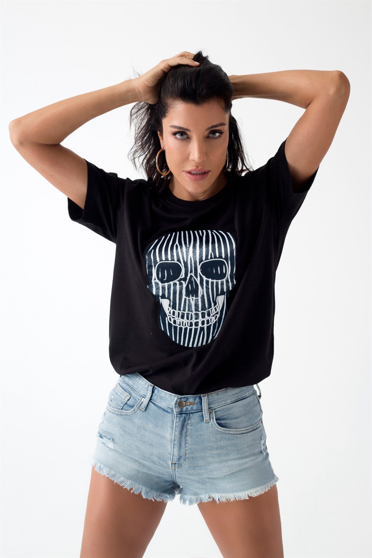 DIGITAL PRINTED-EMBROIDERED SKULL Tshirt